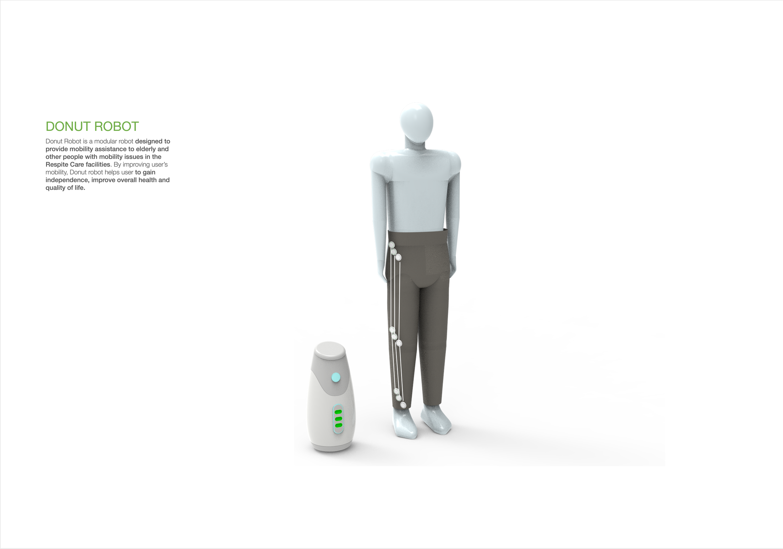 Donut Robot was designed to address seniors mobility issues within Respite Care facilities in Australia. Donut robot is a modular robot designed to provide mobility assistance to elderly and other people with mobility issues to improve their health, quality of life and gain independence.